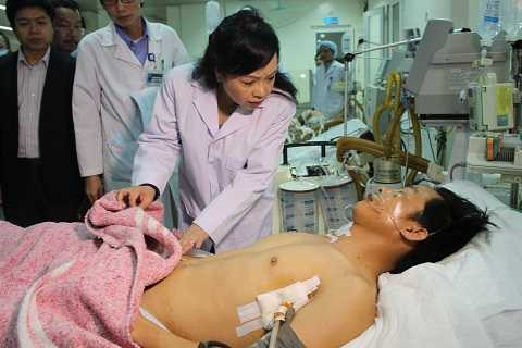 Nhìn thấy những công nhân đang nằm bất động tại khoa chấn thương hồi sức, không thể nói chuyện vì tình trạng đang xấu, Bộ trưởng Tiến đã gọi ngay trưởng khoa đến chỉ đạo, đề nghị phải liên tục thăm khám, quan tâm đến diễn biến sức khỏe bệnh nhân.