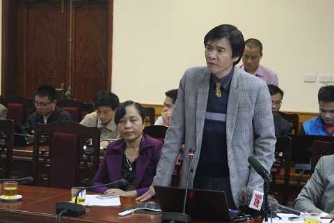 | Ông Phạm Trần Đệ phát biểu tại cuộc họp báo |