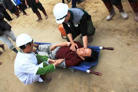 Diễn tập ứng phó tình huống khi các nạn nhân được cứu ra ngoài.