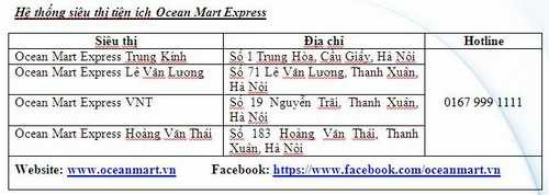 (VTC News) - Ngày 1/8/2014, siêu thị tiện ích Ocean Mart Express Hoàng Văn Thái tại địa chỉ 183 Hoàng Văn Thái, Thanh Xuân, Hà Nội sẽ chính thức khai trương.