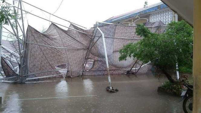 Vào khoảng 14h30 ngày 7/10, một cơn mưa lớn kèm theo gió giông làm sập hoàn toàn mái che sân Trường tiểu học Giá Rai A, (phường 1, thị xã Giá Rai, Bạc Liêu) làm 9 em học sinh của trường bị thương.