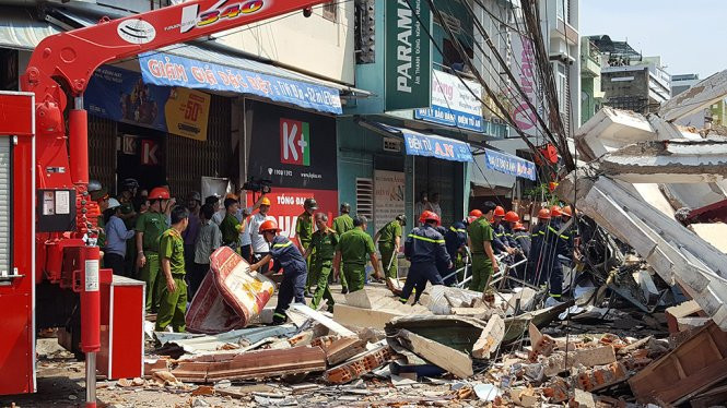 Người dân xung quanh cho biết thời điểm xảy ra tai nạn, 8 công nhân đang xây nhà 298 Trần Hưng Đạo ra ngoài ăn nên may mắn thoát nạn.