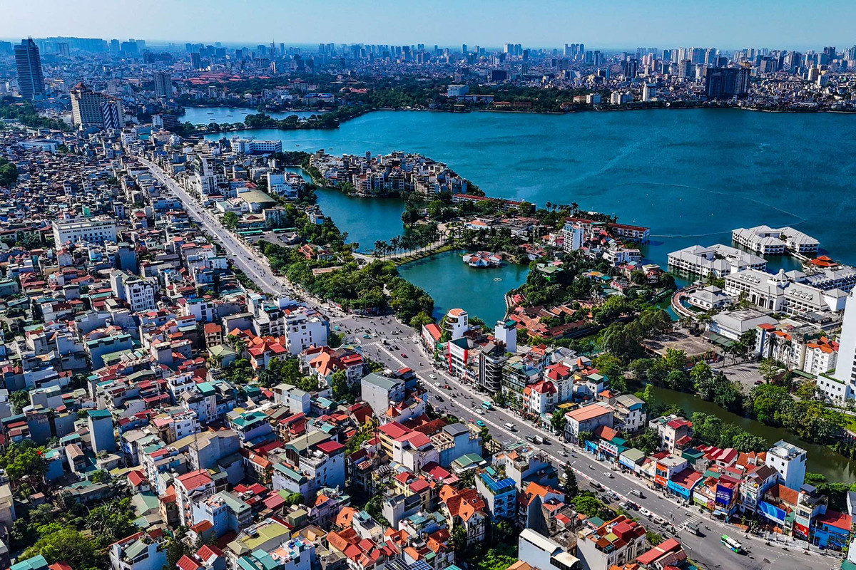 Quận Tây Hồ, Hà Nội nhìn từ trên cao. (Ảnh: Đắc Huy)