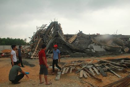 Khoảng 7 công nhân đang đổ bê tông trên giàn giáo rơi xuống đống đổ nát, bị vùi lấp, những người còn lại may mắn thoát nạn.