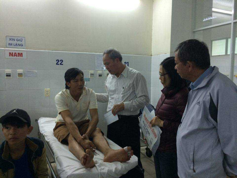 Cơ quan chức năng đến thăm hỏi nạn nhân bị thương trong vụ sập trụ sở cũ báo Đà Nẵng.