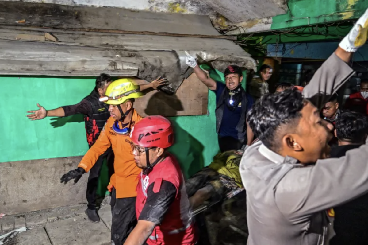 Chính quyền địa phương thông tin trụ móng của trường đổ sập khi đội thi công đang đổ bê tông tầng 4 của tòa nhà, khiến hàng chục người bị mắc kẹt dưới đống đổ nát. Đây là vụ sập nhà thứ hai xảy ra tại Indonesia trong vòng chưa đầy một tháng.