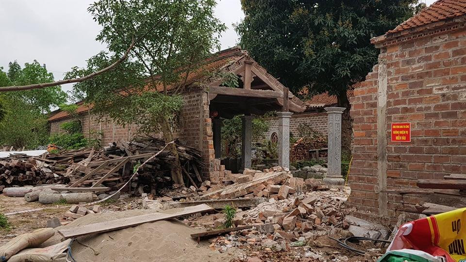 Hiện trường vụ sập tường chùa Tranh khiến một người thiệt mạng.