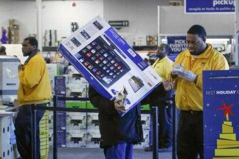 | Một nhân viên Walmart giúp khách hàng chuyển TV giảm giá tại Broomfield trong ngày 28/11/2014. |