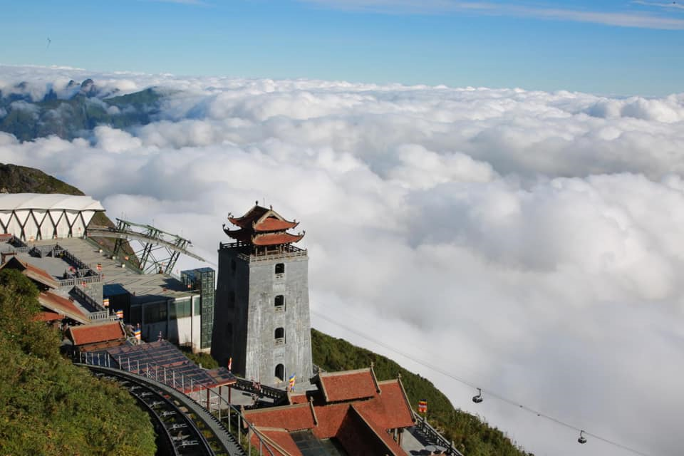 Đỉnh Fansipan - một trong những điểm đến đầu tiên trong top những tọa độ săn mây đẹp nhất được khách du lịch yêu thích. Fansipang là một biểu tượng đáng tự hào tại Sapa. Du khách đến đây đều muốn được check in nóc nhà Đông Dương huyền thoại này. Nơi đây thường thách thức các phượt thủ chinh phục bằng đường bộ. Tuy nhiên du khách nếu ngại nguy hiểm có thể đi bằng cáp treo lên đây.