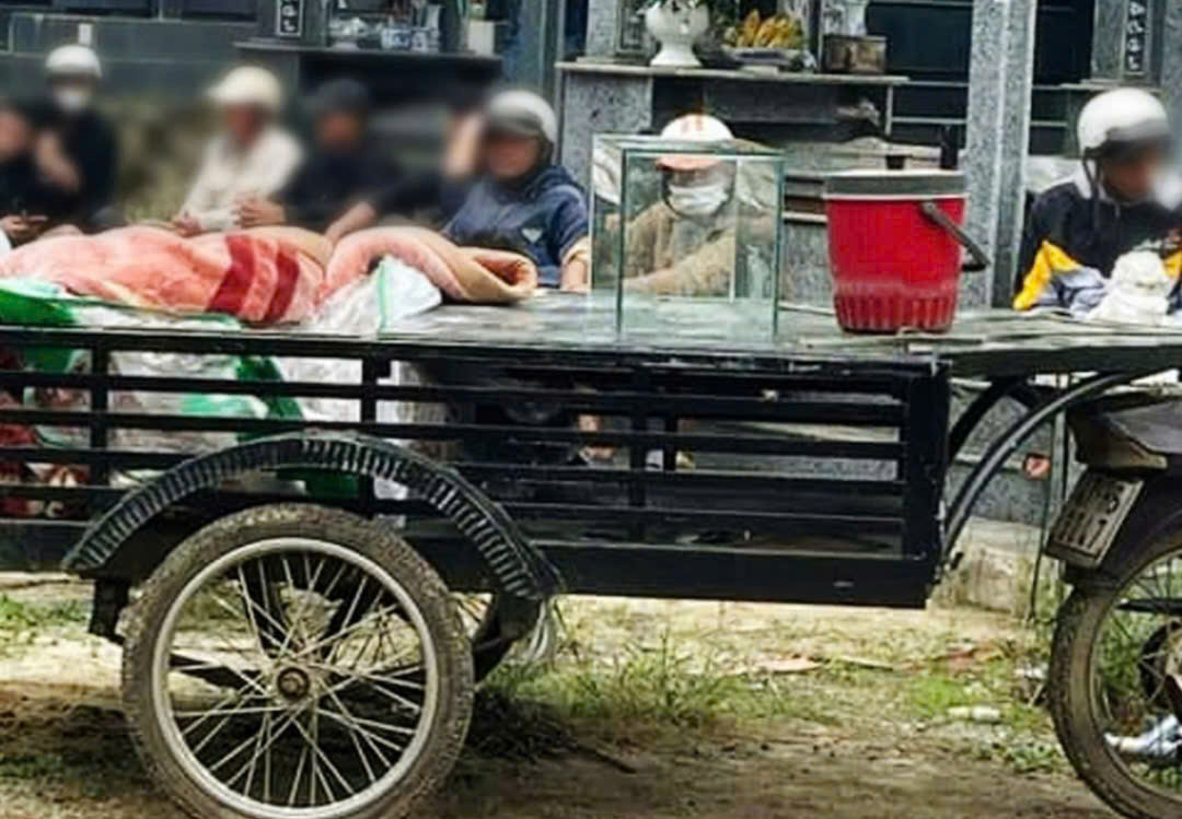 Người dân phát hiện thi thể của một người đàn ông đặt trên một chiếc xe lôi.