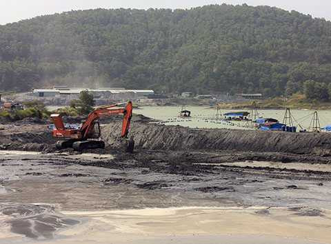 Anh H. là công nhân Công ty Cổ phần Sông Đà - Cao Cường, đơn vị khai thác xỉ thải của Nhà máy nhiệt điện Phả Lại để làm tro bay.