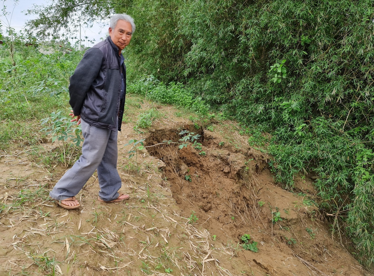 Cũng như ông Binh, ông Nguyễn Thanh Hồng (trú thôn Minh Long) đang thấp thỏm không yên trước thực trạng bờ sông sạt lở khiến diện tích đất sản xuất giảm dần theo thời gian. Chỉ tay vào một đoạn bờ sông sạt lở nghiêm trọng, ông Hồng cho hay: "Chỗ này trước đây có mấy bụi tre được tôi trồng để chống sạt lở nhưng rồi cũng bị nước sông nhấn chìm. Chuồng trại chăn nuôi của gia đình đã bị kéo sập chỉ sau một đêm nước dâng cao", ông Hồng nói.