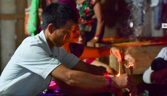 Cũng như gia đình anh trai, giữa gian nhà sàn cao ráo, Xanh đặt chiếc lư hương cùng gói bánh lên cái bàn nhỏ giữa nhà làm bàn thờ tạm cho vợ và đứa con xấu số bị núi lở chôn vùi.