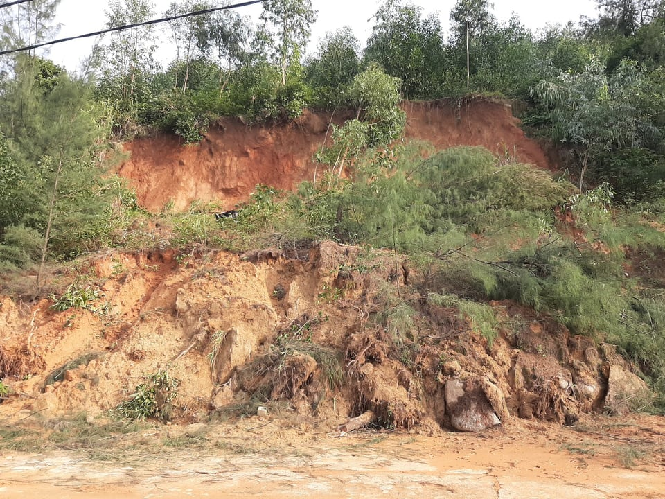 Điểm sạt lở đất nghiêm trọng tại xã Cẩm Lĩnh (huyện Cẩm Xuyên, Hà Tĩnh).