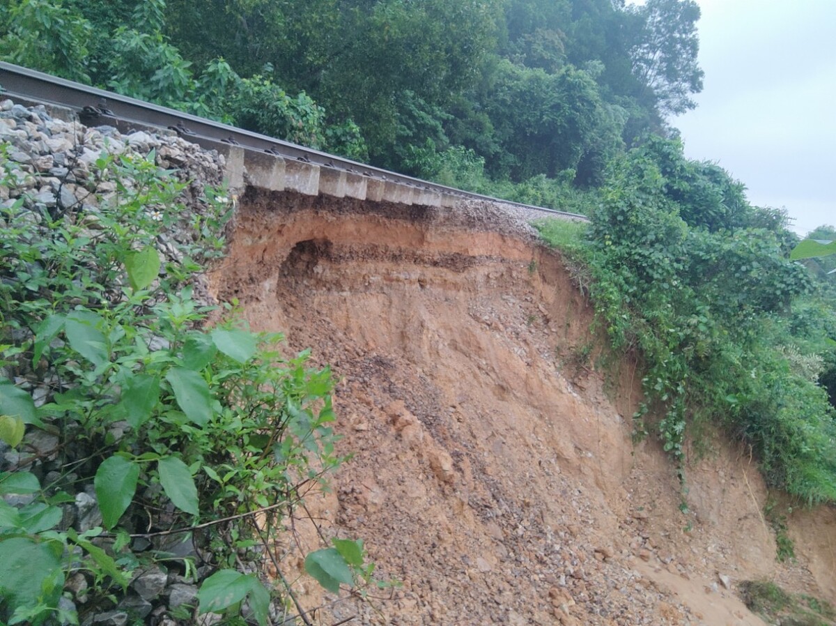 Trước đó, rạng sáng cùng ngày, tại Km354+900 đến 355+400, khu gian Yên Duệ - Hòa Duyệt xảy ra sạt lở do ảnh hưởng mưa lớn.