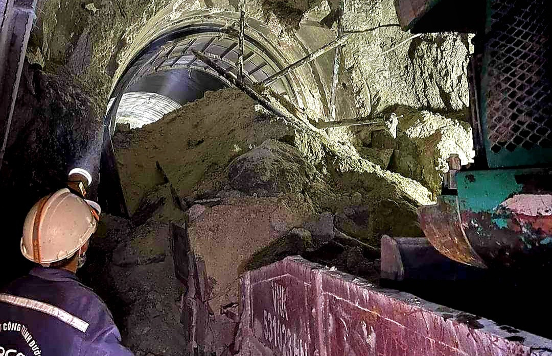 "Hầm đường sắt Chí Thạnh đang trong quá trình phong tỏa để thi công cải tạo thì bất ngờ đất đá trên trần hầm sạt xuống, hiện lực lượng chức năng đang khẩn trương khắc phục sự cố trên" - ông Vinh cho hay.