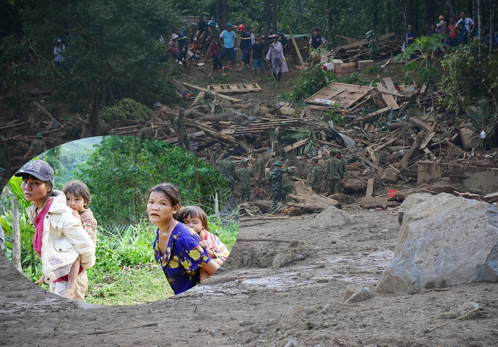 "Mãi tới khi trời sáng, đứa con gái 4 tuổi của vợ chồng tôi được mọi người cứu sống và đưa ra ngoài. Còn lại 3 đứa con 11 tuổi, 7 tuổi và 10 tháng tuổi bị vùi lấp", giọng nghèn nghẹn, chị Diệu nói.