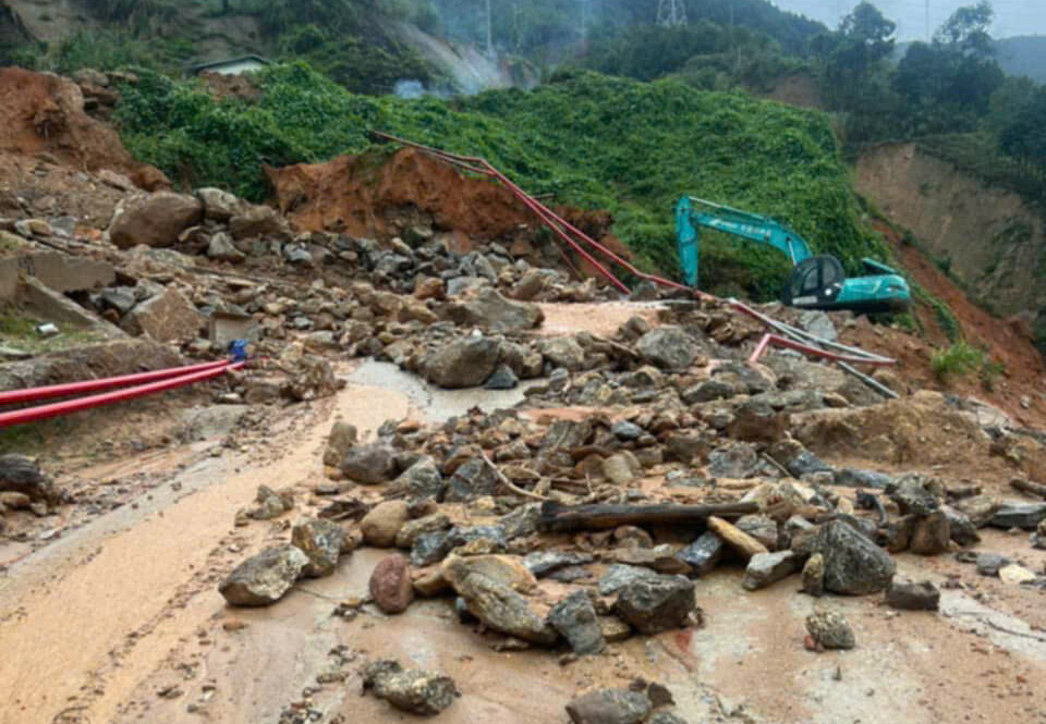 Theo ông Vinh, sau cơn bão số 3 năm 2024, một số khe suối đã thay đổi dòng chảy gây sạt lở bùn đất, chia cắt đường dẫn vào nhà máy. Hiện tại đơn vị đã điều động máy xúc để san gạt đất đá tại các vị trí bị sạt lở.