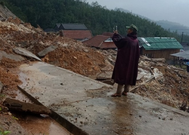 Theo ông Xuyên, rạng sáng 1/12, trên địa bàn xã xảy ra vụ sạt lở núi khiến cả nghìn khối đất đá trút xuống vùi lấp nhà cửa của người dân.