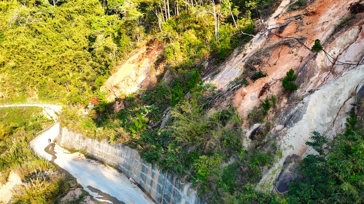 Ghi nhận từ thôn Đưng K’Nớ (xã Đam Rông 4, tỉnh Lâm Đồng) đi về phía tỉnh Đắk Lắk, hai bên đường, các taluy âm và dương có nhiều điểm sạt lở lớn, dốc cao dựng đứng, đất đá nằm trơ trọi. Nhìn từ xa, các điểm sạt lở này như những vệt lở xé toạc núi rừng xanh ngát.