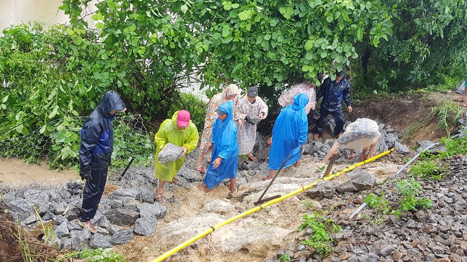 Sau khi nhận thông tin, Công ty CP đường sắt Quảng Nam - Đà Nẵng đã điều động 70 công nhân cùng máy móc đến hiện trường, thực hiện gia cố sạt lở. "Hiện chúng tôi đang khắc phục sự cố bằng cách dùng đá kè chắc hai vị trí sạt lở. Sau này mới dỡ ra để kè bằng bê tông cốt thép", ông Tý nói thêm.