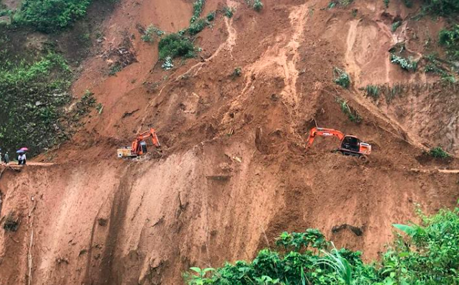 Hai máy xúc đang làm nhiệm vụ khắc phục sạt lở để thông đường thì lượng đất đá lớn đổ xuống khiến hai xe bị đẩy xuống vực. Một trong hai máy xúc bị đất đá vùi lấp hoàn toàn. Ngay sau đó, người dân đã thông báo sự việc với lực lượng chức năng địa phương để giải cứu 2 tài xế máy xúc.