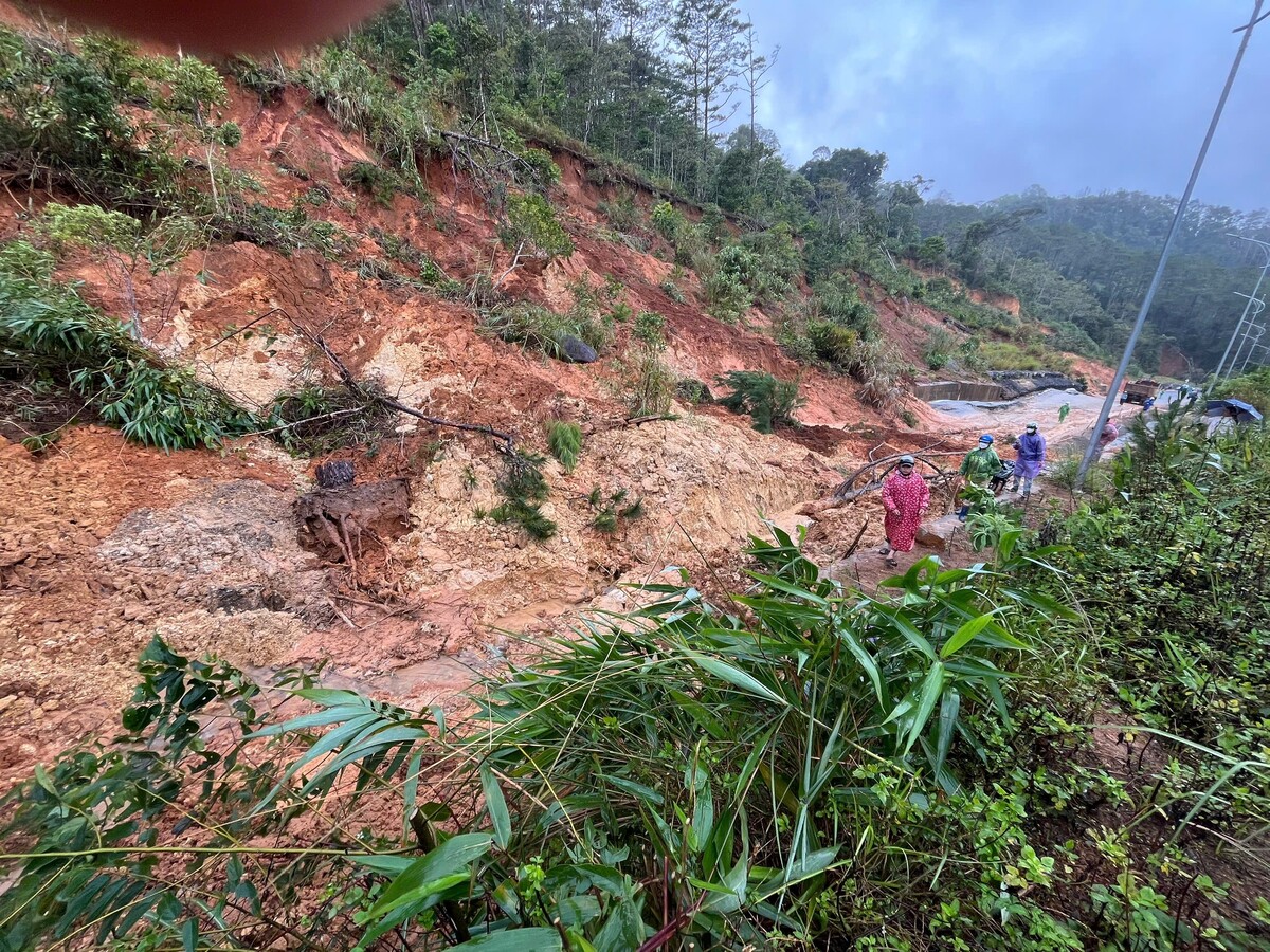 Rạng sáng cùng ngày, mưa khiến tuyến Quốc lộ 24 qua địa bàn xã Măng Đen tiếp tục xảy ra sạt lở nghiêm trọng.