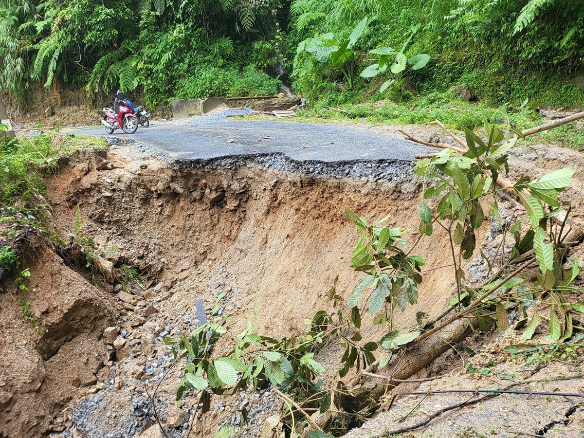 Mưa lũ cũng làm Km4 tỉnh lộ 177 bị sạt lở, đất đá sạt, trôi xuống đường với khối lượng trên 5.000m3 khiến xe cộ không thể đi lại.