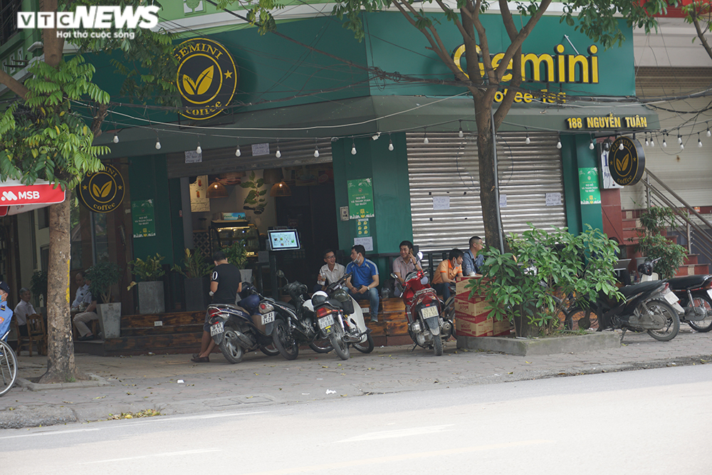 Hà Nội cùng 26 tỉnh, thành phố khác nằm trong danh sách các địa phương thực hiện cách ly xã hội ít nhất đến ngày 22/4. Nhưng hôm nay 21/4, chưa hết lệnh cấm kinh doanh, nhiều cửa hàng không kinh doanh các mặt hàng thiết yếu ở Hà Nội đã bắt đầu hoạt động trở lại. Trong ảnh nhiều người uống cà phê tại cửa hàng thuộc chuỗi Gemini trên phố Nguyễn Tuân (quận Thanh Xuân) sáng nay. Khoảng cách 2m theo yêu cầu của cơ quan chức năng cũng không được đảm bảo.