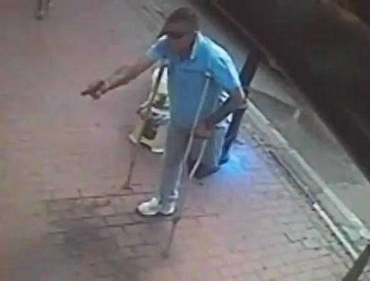 Người đàn ông cụt một chân chống nạng lạnh lùng rút súng bắn nhưng ngay sau đó đã bị quật ngã.