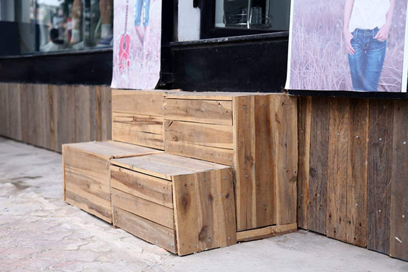 Một cửa hàng sử dụng bậc tam cấp là thùng gỗ đóng tạm bợ.
