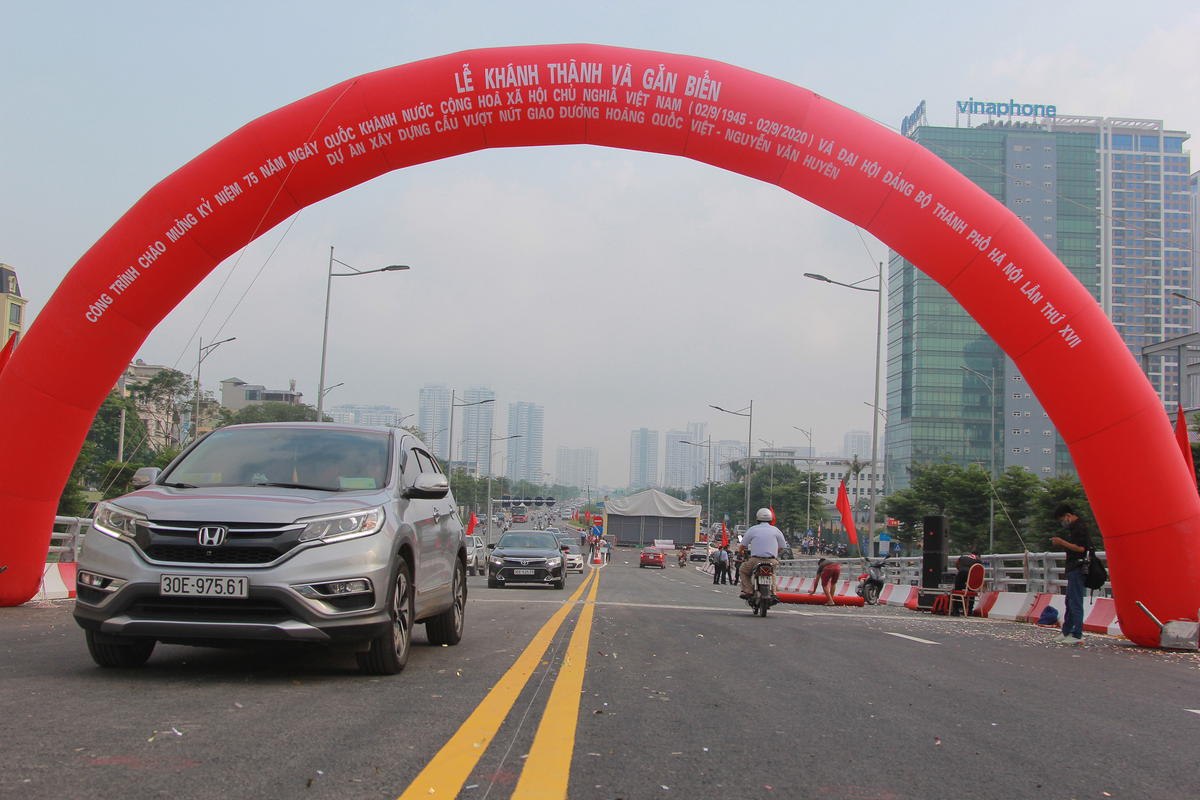 7h ngày 28/8, cầu vượt Nguyễn Văn Huyên khánh thành và chính thức đi vào hoạt động sau hơn 10 tháng triển khai. Dự án hoàn thành đúng vào dịp chào mừng kỷ niệm 75 năm Ngày Quốc khánh 2/9 và Đại hội Đảng bộ TP Hà Nội lần thứ XVII, đảm bảo chất lượng, đảm bảo mỹ quan và an toàn.