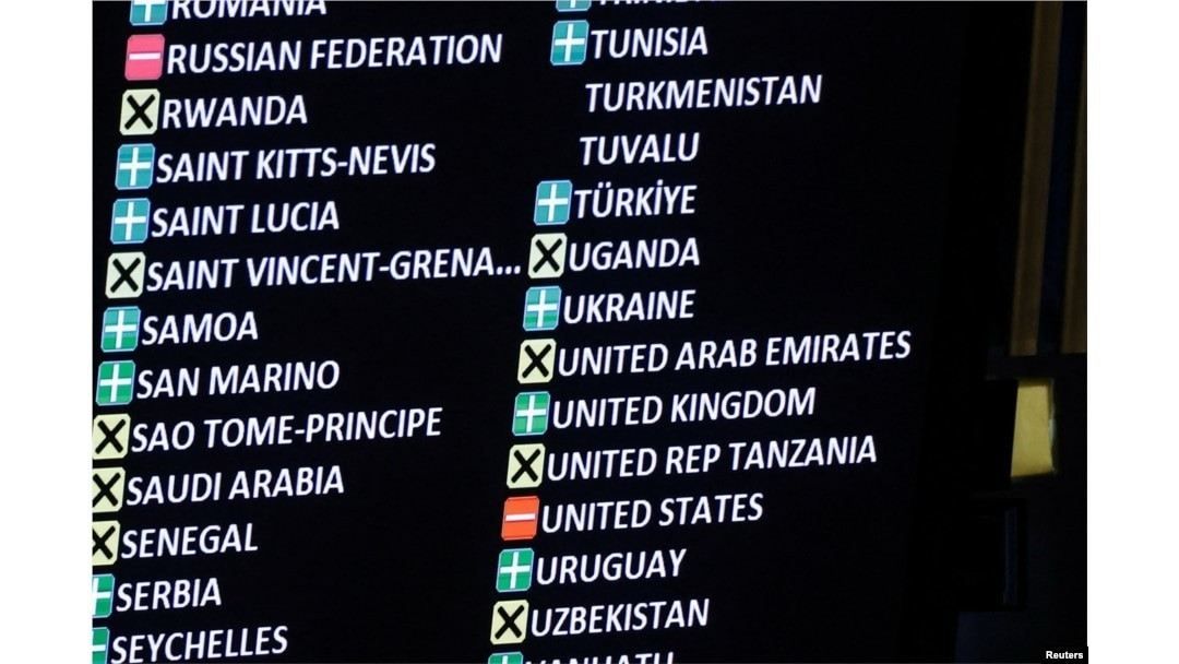 Nghị quyết của Đại hội đồng do châu Âu hậu thuẫn được thông qua với 93 phiếu thuận. Bên cạnh kêu gọi giảm leo thang, văn bản cũng yêu cầu Nga “ngay lập tức, hoàn toàn và vô điều kiện rút toàn bộ lực lượng quân sự khỏi lãnh thổ Ukraine trong phạm vi biên giới được quốc tế công nhận”.