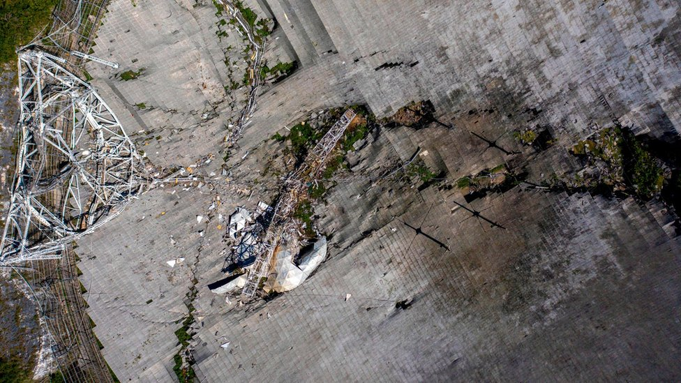Kính viễn vọng của Đài quan sát Arecibo ở Puerto Rico bị sập sau hàng loạt sự cố. (Ảnh: BBC)