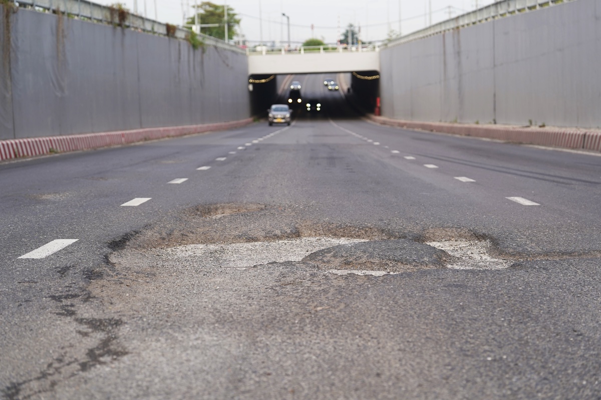 Tuy nhiên, sau chưa đầy 9 tháng khai thác, công trình đã bộc lộ nhiều bất cập. Đáng chú ý, mặt đường hai bên hầm chui Nguyễn Văn Linh xuất hiện dày đặc ổ voi, ổ gà, gây mất an toàn cho người tham gia giao thông.