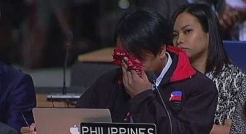 Trưởng đoàn đàm phán của Philippines, Yeb Sano nói trong nước mắt rằng người Philippines không thể ngờ trong hai năm qua, đất nước này liên tục hứng chịu hai cơn bão có sức hủy diệt khủng khiếp.