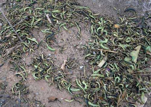 Lúc đầu, chúng bò lên cổng, tường rào, sau đó “tấn công” vào tận nhà. Loài sâu này trông rất ghê rợn, có con dài đến 10cm. Người dân đã liên tục quét dọn, diệt sâu nhưng hết bầy này lại đến bầy khác xuất hiện. Một số gia đình có con nhỏ phải đóng cửa kín để sâu khỏi bò vào nhà.
