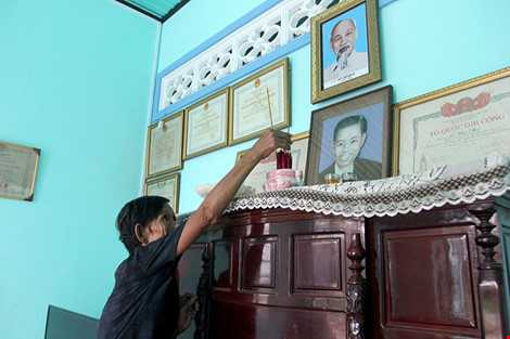 Có được ngôi nhà mới, mẹ Oanh dời bàn thờ liệt sĩ sang nhà mới để tiện việc nhang khói mỗi ngày.