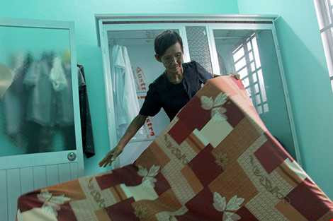 Nhà mới có một phòng ngủ dành cho mẹ Oanh và cháu gái, tấm nệm ngủ, tủ quần áo cũng là do người bà con tặng hết.