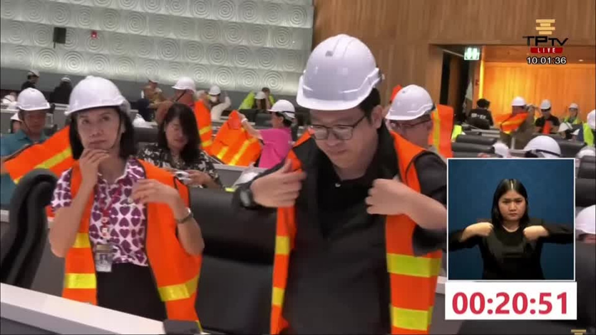 Trong phiên họp Quốc hội Thái Lan gần đây, các nghị sĩ gây chú ý khi xuất hiện với mũ bảo hiểm, áo phản quang, đèn và còi đặt ở mọi ghế. Đây là một phần của cuộc diễn tập ứng phó động đất trong bối cảnh nước này tăng cường chuẩn bị cho các tình huống khẩn cấp.