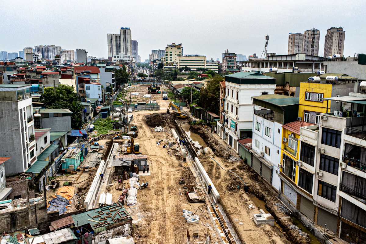 Theo nhà thầu, mặt bằng thi công phía Kim Đồng 2 bên vỉa hè đang vướng 23 đơn vị chủ quản (2 đường điện 22KV, 19 đơn vị cáp thông tin, 1 đường nước sạch). Việc di chuyển và thi công các công trình hạ tầng trên phạm vi mặt bằng đang gặp nhiều khó khăn.