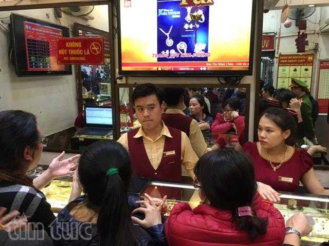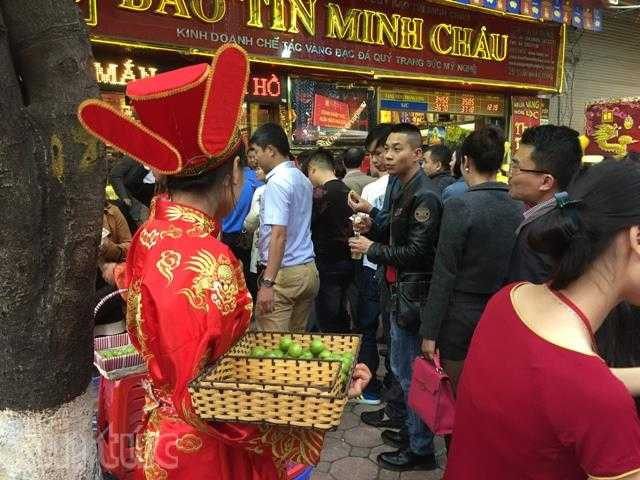 Trong các tiệm vàng, hầu như không có quầy nào vắng khách. Tuy đã chiều muộn những nhiều người vẫn bắt đầu đến để mua vàng cầu may. Tại cửa hàng Bảo Tín Minh Châu, anh Hoàng (một nhân viên văn phòng ở quận Hoàn Kiếm) cho biết: "Tranh thủ lúc tan làm, tôi đến đây mua nửa chỉ vàng để lấy may. Năm ngoái tôi cũng đi mua và thấy có chút may mắn".