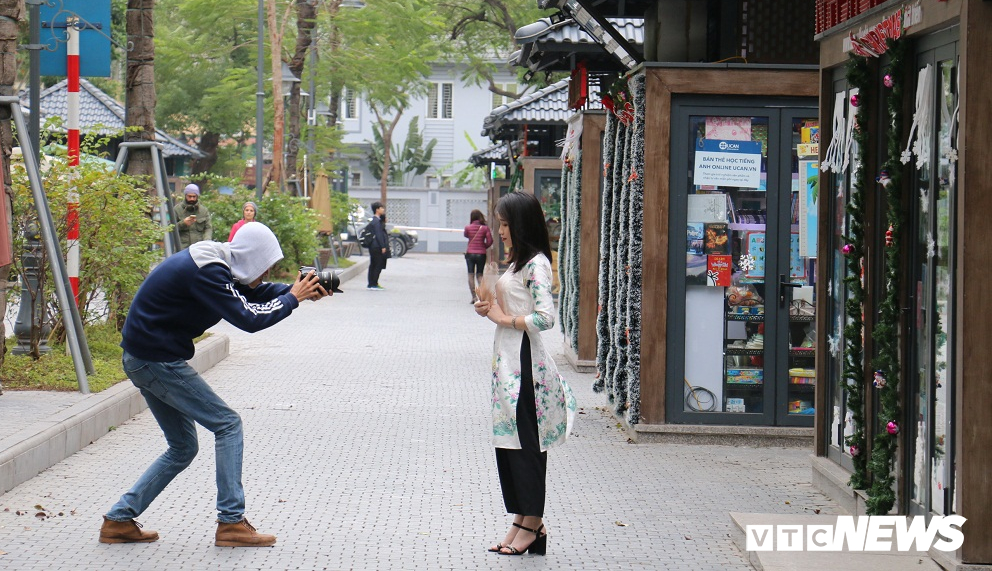 Theo ghi nhận của PV, thỉnh thoảng có một số người đến phố sách nhưng với mục đích là để tham quan, chụp ảnh kỷ niệm. (Ảnh: Tùng Lâm)