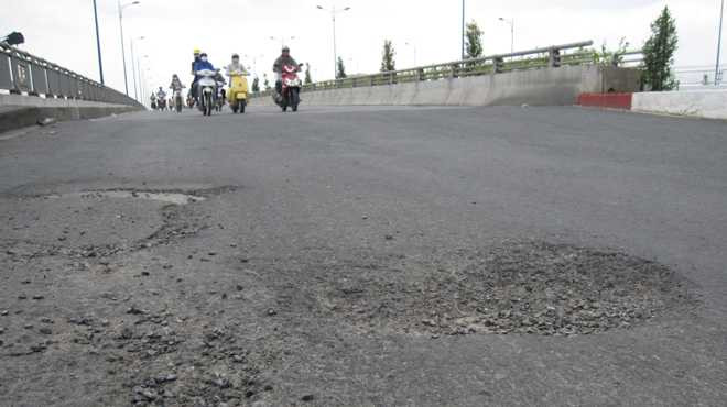 | Ổ gà xuất hiện trên cầu Rạch Chiếc (Q.9, TP.HCM) |