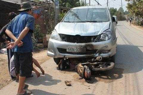 Vào thời điểm trên, xe ô tô mang BKS 30A - 494.88 do một phụ nữ điều khiển đã đâm vào xe máy mang BKS 29D1 - 647.08 do người đàn ông điều khiển.