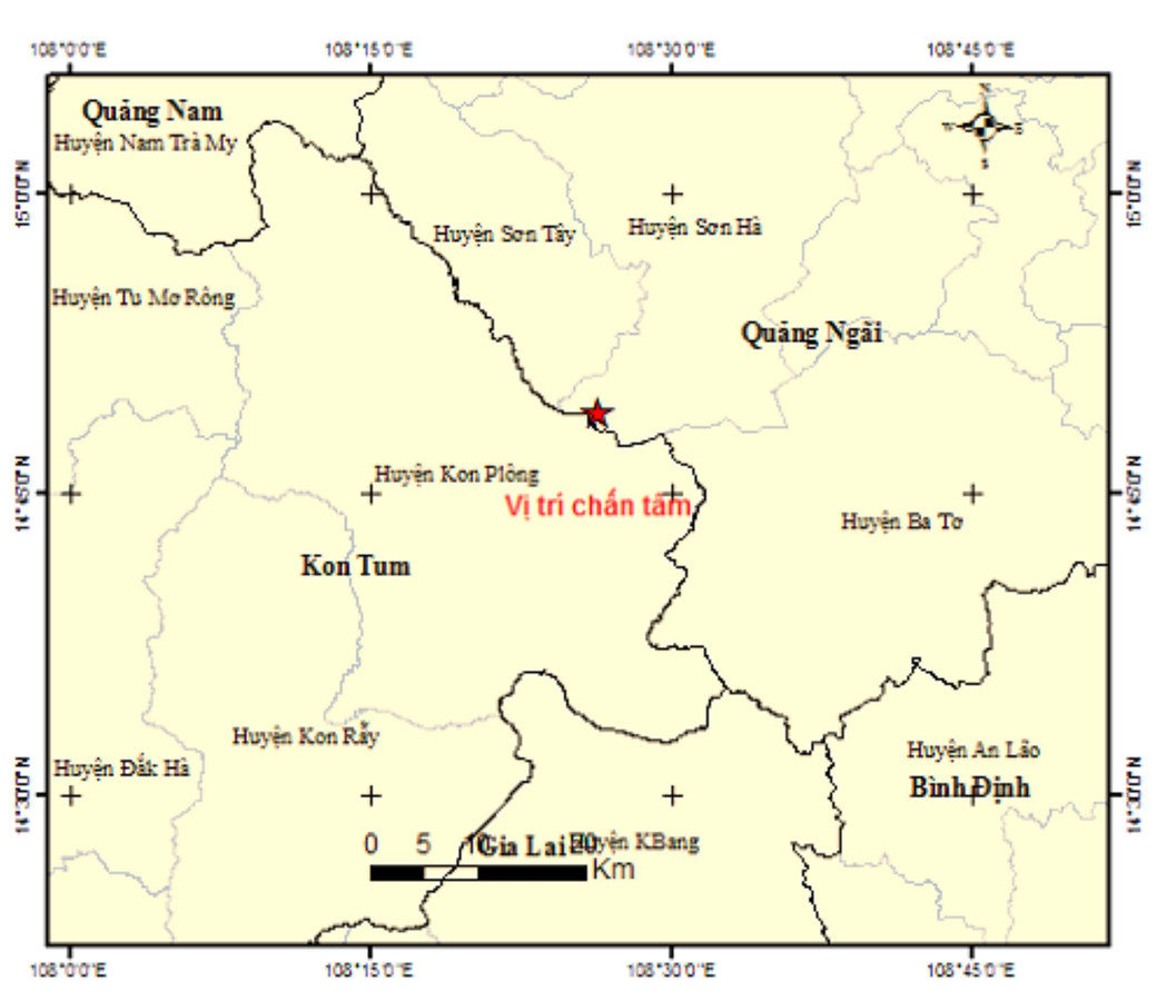Đây là trận động đất thứ 30 xảy ra trong tháng 8/2022 tại khu vực Đông Trường Sơn, thuộc các tỉnh Kon Tum, Quảng Nam và Quảng Ngãi.