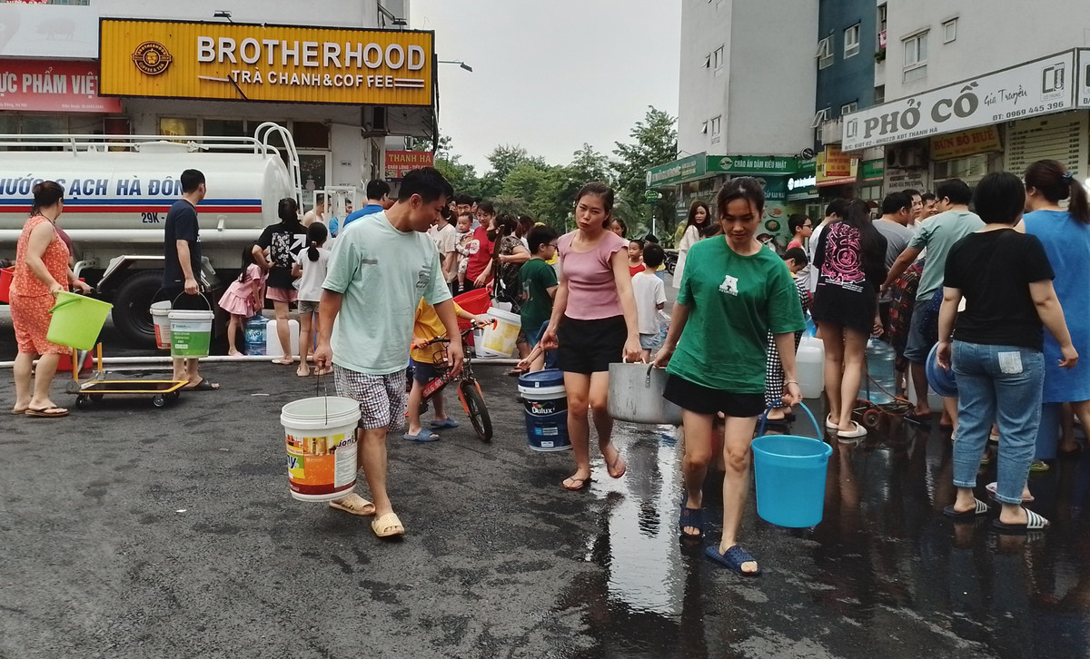Nước ở các xe bồn chuyên dụng được các nhà hảo tâm đưa đến nhằm giúp đỡ cư dân Khu đô thị Thanh Hà vượt qua "cơn khát" nước sạch. Dù vậy, lượng nước đưa đến vẫn không đủ đáp ứng nhu cầu cho khoảng 30.000 cư dân đang sinh sống tại đây.
