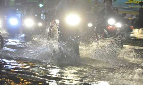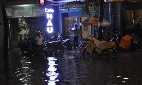 | Cơn mưa từ 17h đến 19h khiến nhiều tuyến phố ngập nặng. |