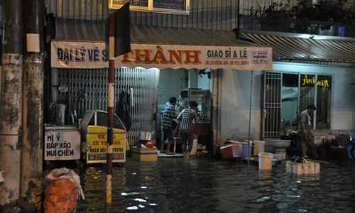 Anh Dũng - chủ sạp bán hột vịt ở đầu đường Nguyễn Văn Linh rầu rỉ nói: “Chiều giờ mưa nước ngập sâu bán ế ẩm. Hơn nữa mùi nước dưới cống hòa vào nước mưa gây hôi và ngứa chân”. Còn ở cả con đường Trần Văn Hoài dài gần 1 km chìm sâu trong nước, nhiều xe bị tắt máy khi đi ngang qua.