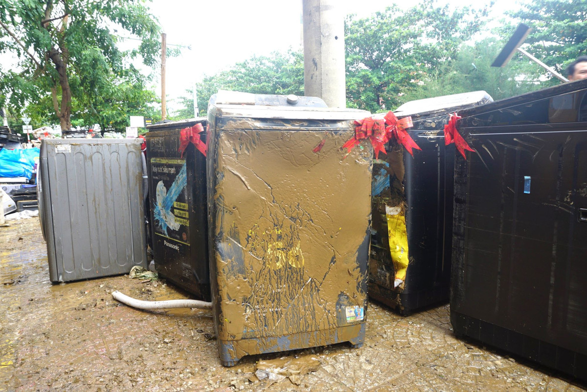 Theo nhân viên làm việc tại cửa hàng này cho biết, toàn bộ hàng hóa như máy giặt, tivi, tủ lạnh đều bị ngâm nước suốt đêm 14/10 đến sáng 15/10. "Nước rút, nhìn hàng hóa bị bùn non phủ kín mà xót xa", nhân viên này cho biết.